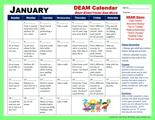 I should have posted this last week, but got behind with everything going on. If it’s not too late, here is the DEAM Activity Calendar for January 2018.