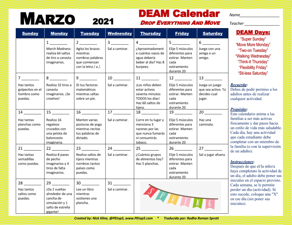 March DEAM March DEAM CalendarDownload March DEAM (Spanish)Download Early Childhood DEAMDownload DEAM Advanced CalendarDownload Share this: Click to share on X (Opens in new window) X Click to share on Facebook (Opens in new window) Facebook Like Loading... Related