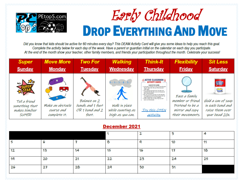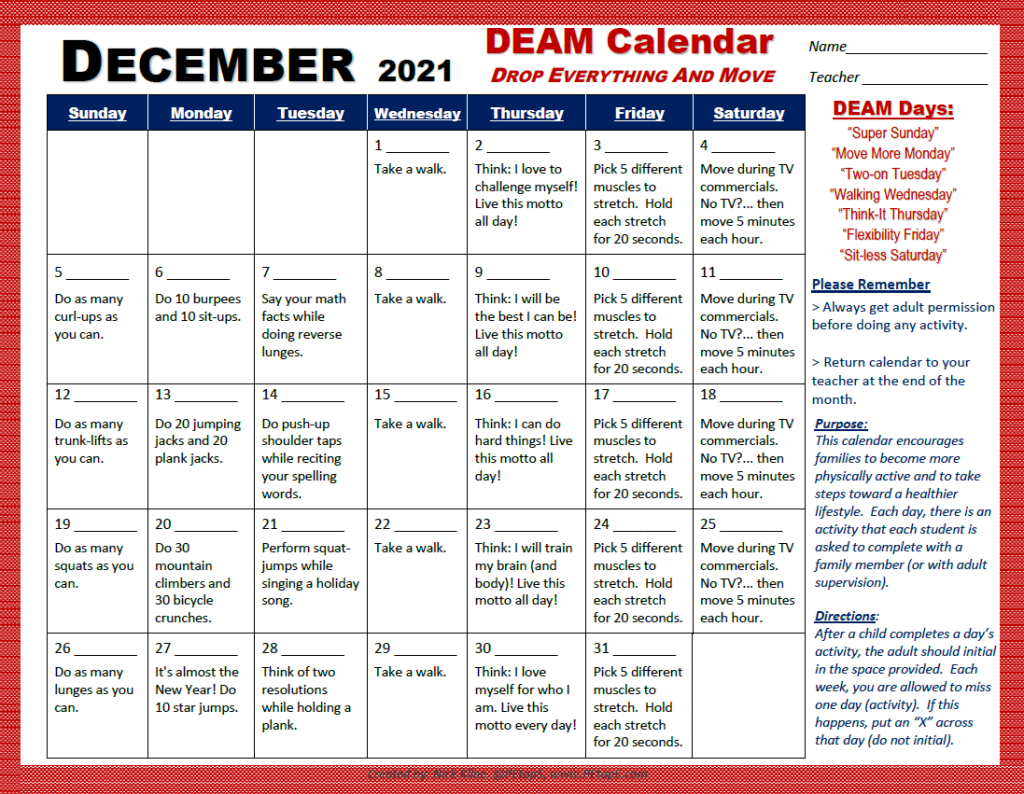 December DEAM Early Childhood CalendarDownload Elementary CalendarDownload Spanish (Elem.) CalendarDownload Share this: Click to share on X (Opens in new window) X Click to share on Facebook (Opens in new window) Facebook Like Loading... Related