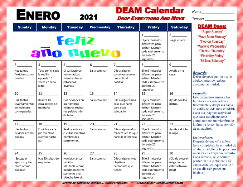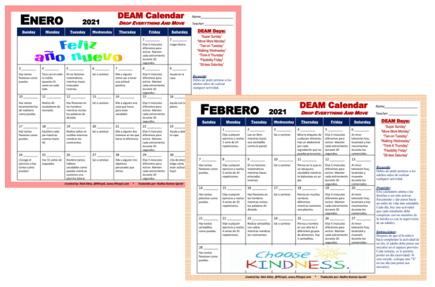 Just in time for the New Year! Here are the first two months of 2021 in Spanish. Thanks again to Radha Roman Sprott from Manorhaven Elementary in the Port Washington (NY) School District for helping to make the translations. If you missed the original post, click here for the English versions of DEAM.